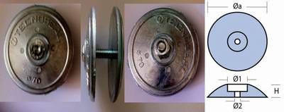 Anoden - Ruder-Rundanoden aus Zink, Eine Rumpfannode besteht aus zwei miteinander durch eine Schraube verbundenen Scheiben.