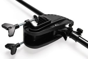 Die neue Motorhalterung mit Kippmechanismus ist breiter und tiefer als die der bisherigen Modelle und passt daher auch auf Boote mit besonders starkem Heckspiegel. Diese Halterung ist aus bruchsicherem Polyamid-Composit-Material und UV-beständig. Ein neuartiger Entsicherungshebel an der Halterung ermöglicht es, den Motor mit einem Handgriff hochzuschwenken.
