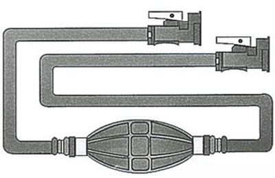 Spezialschlauch mit Zwischenschicht aus Polyester. Querschnitt 8x13, Druckwiderstand bis 15 bar. Mit Pumpball für bleifreies Benzin.