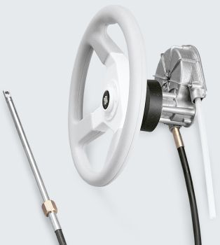 Aus diesem Artikel musst du dir das entsprechende Steuerwerk und das Steuerkabel in der richtigen Länge auswählen, Steuerrad und Anschlussstücke müssen optional ausgwählt werden.
