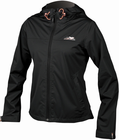 Sportliche, superleichte Damen-Jacke aus qualitativ hochwertigem 4-Wege-Material. Die Jacke hat 2 seitliche Taschen und eine Kapuze.