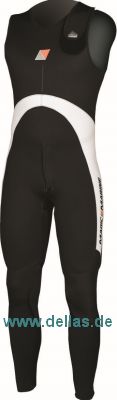 Ärmelloser Neoprenanzug mit innen liegenden einstellbaren Hängepads. SuperFlex Neopren, Powertex-Verstärkungen im Gesäßbereich und an den Knien.