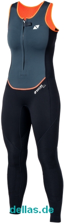 Damen LongJohn im Sitzschnitt zum Segeln. Starkes, sehr komfortables, leichtes MFLEX-100%-Neopren, 3 mm dick, Flatlock-Nähte verklebt, innen im Brust- und Rückenbereich Thermowarm-Honigwaben-Beschichtung für Warme und Komfort. 4-Wege-Supertex-Gesäß-und Knieverstärkungen und -protektoren, Frontreißverschluss. Der Long John kann mit den Magic Marine ProPads als Hängehose ausgerüstet werden.