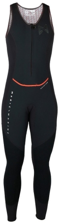 Damen LongJohn im Sitzschnitt zum Segeln. Starkes, sehr komfortables, leichtes MFLEX-100%-Neopren, 3 mm dick, Flatlock-Nähte verklebt, innen im Brust- und Rückenbereich Thermowarm-Honigwaben-Beschichtung für Warme und Komfort. 4-Wege-Supertex-Gesäß-und Knieverstärkungen und -protektoren, Frontreißverschluss. Der Long John kann mit den Magic Marine ProPads als Hängehose ausgerüstet werden.