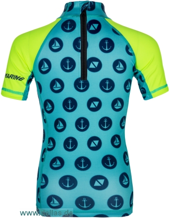Kurzärmliges Rash Shirt für Kinder mit Flatlock Nähten, Reißverschluss hinten für einfaches Anziehen, UV Schutz (UPF 50+).