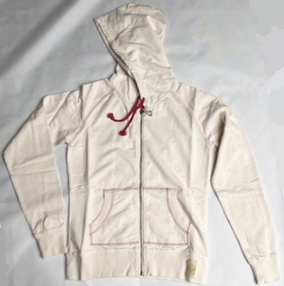 Hoody für Frauen, Frontreißverschluss, 2 Bauchtaschen, Kapuze mit Kordelzug, von innen mit angedeuteten Segelmotiven, ZickZack Nähte in Rot,