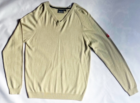 Strickpullover mit V-Ausschnitt, MUSTO-Boat Logo auf dem linken Arm.