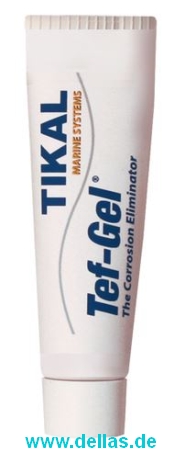 TIKAL TEF-GEL ist eine wasserfeste, auf PTFE basierende Paste, die das Aufblühen von Metall verhindert und zuverlässig vor Korrosion durch galvanische Ströme zwischen unterschiedlich edlen Metallen schützt.