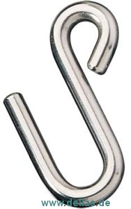 Der S-Haken ist oben mit einem fast geschlossenem Auge und und der Haken zum Einhaken ist sehr lang. Dadurch ist er sehr sicher gegen unbeabsichtiges Lösen.