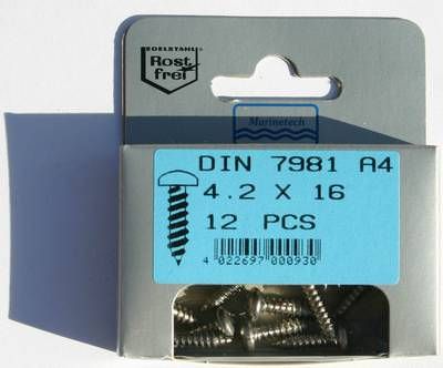 12 Linsenkopfblechschrauben DIN 7981 4,2 x 16 mm alles aus Edelstahl A4