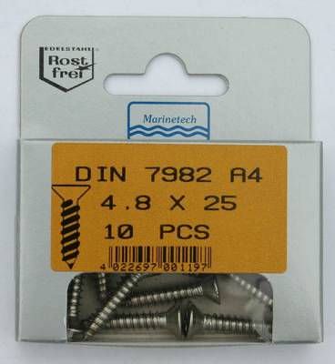 10 Senkkopfblechschrauben DIN 7982 4,8 x 25 mm alles aus Edelstahl A4