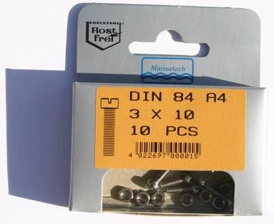 Zylinderkopfschrauben DIN 84 M3 mit 10 Muttern DIN 934 M4 alles aus Edelstahl A4