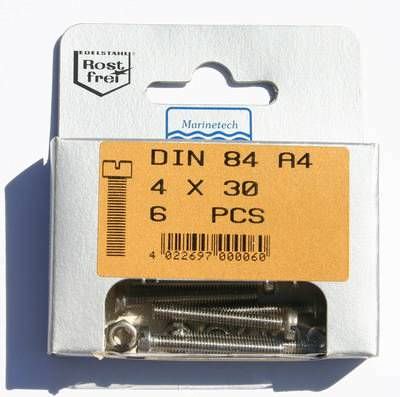 6 Zylinderkopfschrauben DIN 84 M4 x 30 mm mit 6 Muttern DIN 934 M4 alles aus Edelstahl A4
