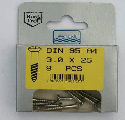 8 Linsensenkkopfholzschrauben DIN 95 3,0 x 25 mm alles aus Edelstahl A4