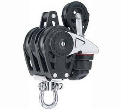 40 mm Carbo-Ratchet Knarrblock, dreifach mit Wirbel, Hundsfott und 471 Carbo-Cam +29 mm Block