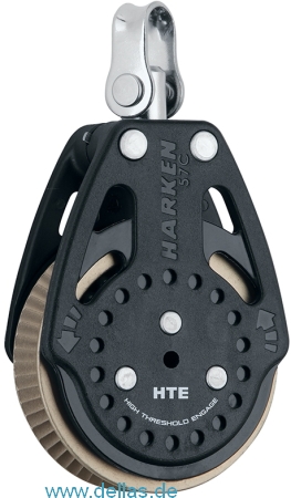 Die Feder in der HTE (high-threshold engage/hoch schwellig einrastend) Version von dem 57 mm Carbo Ratchamatic® Block wurde steifer gemacht, um den Punkt, an dem die Ratsche aktiviert wird, zu verzögern. Dies erlaubt es dem Block, länger frei zu laufen. Die Ratschenfunktion rastet erst bei höheren Lasten ein. Dies erlaubt der Schot, länger frei zu laufen.