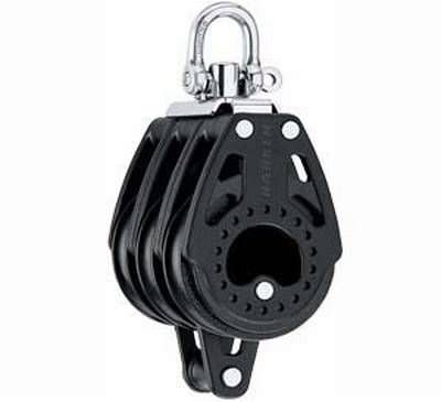 Carbo Air-Blöcke sind 60 % stärker und 30 % leichter als die herkömmlichen Blöcke. Die Wangen aus Nylon Harz sind mit dicht geschichteten langen Glasfasern verstärkt, um einen kompakten Block mit hohem Last-Masse-Verhältnis zu erhalten. Kugellager, Scheibe und Wangen sind geschwärzt für maximalen UV-Schutz. Die Blöcke sind ausgerüstet mit Cam-Lock oder U-Lock Arretierung, um den Schäkel in frontaler oder seitlicher Stellung zu fixieren, oder auch frei drehen zu lassen. Der 75 mm Carbo hat eine sichere Arbeitslast von 500 kp. Er fiert leicht unter Last und ist ideal für Großschot Systeme auf Sportbooten wie Melges 24, J/105 und Henderson 30.