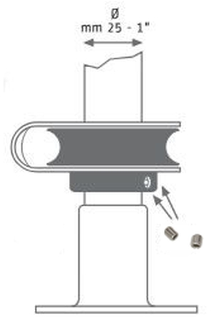 Der Block wird mit 2 Imbusschrauben auf der Relingsstütze befestigt.