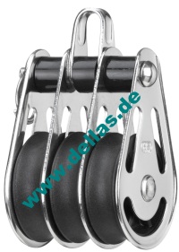 Block mit drei Rollen, Bügel, Gleitlager für 10 mm Tauwerk-Ø