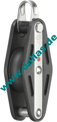 Block mit demontierbarem Bügel und Hundsfott, 1 Rolle, Kunststoffrolle 35 x 12mm, Edelstahl-Kugellager, Seitenteile aus hochwertigem UV-beständigem Kunststoff.