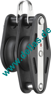 Block mit demontierbarem Bügel, 2 Rollen, Hundsfott, Kunststoffrolle 35 x 12mm, Edelstahl-Kugellager, Seitenteile aus hochwertigem UV-beständigem Kunststoff