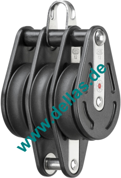 Dreifachblock, 12 mm, 3 Rollen, Hundsfott u. Bügel, kugelgelagert