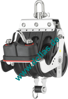 Großschotblock, 3 Rollen, Wirbel, Hundsfott, Schotklemme, 12 mm S-Block-Serie HS SPRENGER