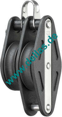 Doppelblock, 14mm, 2 Rollen, Hundsfott u. Bügel, Gleitlager
