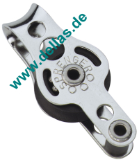 1 Rolle, 19mm, mit festem Bügel und Hundsfott, für 6mm Schot, Edelstahl Kugellager. Extrem kleiner und leichter Block in kompakter Bauweise. Geeignet für Baum-Niederholer, Strecker und Trimmleinen. Alle Materialien sind aus hochwertigen Kunststoffen und Edelstahl rostfrei.