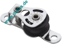 1 Rolle, 19mm, Liegeblock mit Lasche, für 6mm Schot, Edelstahl Kugellager. Extrem kleiner und leichter Block in kompakter Bauweise. Geeignet für Baum-Niederholer, Strecker und Trimmleinen. Alle Materialien sind aus hochwertigen Kunststoffen und Edelstahl rostfrei. Lochabstand: 40 mm, Lochdurchmesse: 4mm
