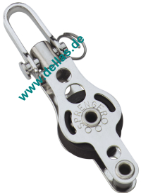 1 Rolle, 19mm, mit Wirbel und Hundsfott, für 6mm Schot, Edelstahl Kugellager. Extrem kleiner und leichter Block in kompakter Bauweise. Geeignet für Baum-Niederholer, Strecker und Trimmleinen. Alle Materialien sind aus hochwertigen Kunststoffen und Edelstahl rostfrei.