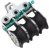 3 Rollen, 19mm, mit festem Bügel, für 6mm Schot, Edelstahl Kugellager. Extrem kleiner und leichter Block in kompakter Bauweise. Geeignet für Baum-Niederholer, Strecker und Trimmleinen. Alle Materialien sind aus hochwertigen Kunststoffen und Edelstahl rostfrei.