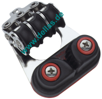 3 Rollen, 19mm, mit festem Bügel und Schotklemme HT08, für 6mm Schot, Edelstahl Kugellager. Extrem kleiner und leichter Block in kompakter Bauweise. Geeignet für Baum-Niederholer, Strecker und Trimmleinen. Alle Materialien sind aus hochwertigen Kunststoffen und Edelstahl rostfrei.