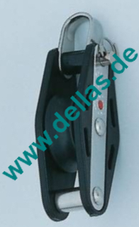 Block mit demontierbarem Bügel, 1 Rolle, Kunststoffrolle 27 x 11,5mm, Kunststoff-Kugellager, Seitenteile aus hochwertigem UV-beständigem Kunststoff, Bruchlast: 600 kg