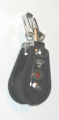 Blöcke mit Wirbel für maximal 8 mm Tauwerk, Rollengröße 27 x 11,5 mm, Bruchlast 600 kg, sichere Arbeitslast 150 kg, Wirbel gegen Bügel austauschbar bei End-Nr. 00, Kunststoff-Kugellager, Seitenteile aus hochwertigem UV-beständigem Kunststoff, geringes Gewicht.