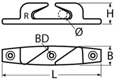 | Länge L | Breite B | Seil-Ø | Höhe H | Ausführung | Bohrloch Ø BD | Art.-Nr. |