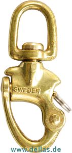 Schweden Schnappschäkel, Messing blank mit Wirbelauge 75 mm