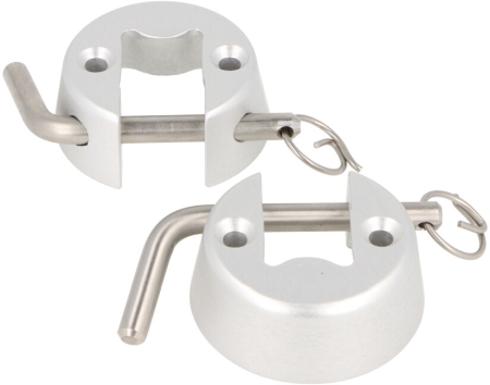 Das Set besteht aus zwei Aufnahmeeinheiten zur Befestigung an Backbord und Steuerbord. Die Aufnahmen werden mit jeweils 2 Schrauben M6 befestigt (nicht im Lieferumfang enthalten).