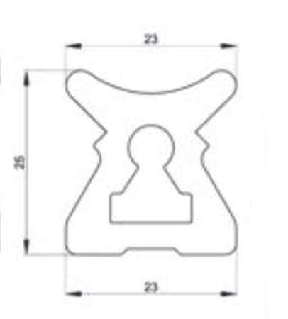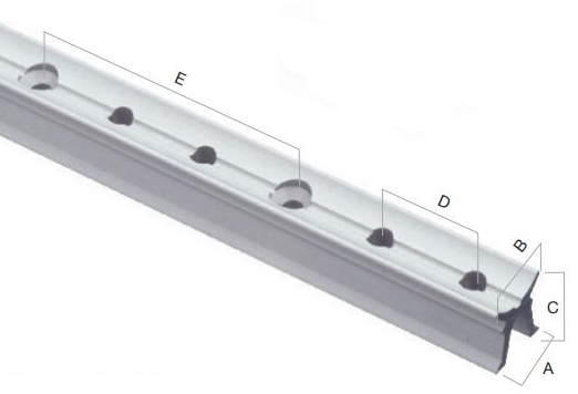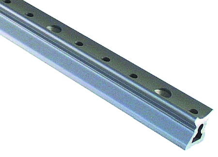 Schiene Aluminium eloxiert mit Rastbohrung für Stopper alle 25 mm.
