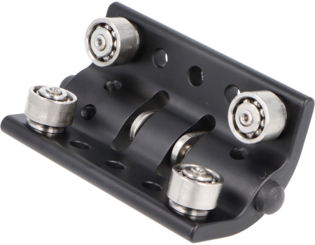 Traveller-Schlitten mit 4 Rollen, einfacher Umlenkung, Ösenbügel und Klemmen System II mit Stahlkugellager