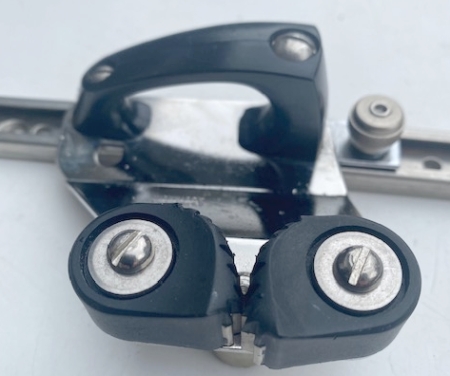 Ronstan Schlitten für 19 mm Edelstahlschiene mit festem Auge, Curryklemme, Führung und Feststeller.