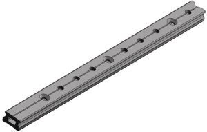 Travellerschien flach, mit Stopperlöcher, Aluminium hart coatiert. Montage auf Deck oder unterlegt.