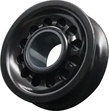 Seilscheiben aus hochfestem Aluminium, hart coat beschichtet, mit Komposit Gleitlager. Für eine optimale Funktion sollte die Achse eine glatte Oberfläche im Toleranzbereich h9 aufweisen. Beim Einsatz mit Reduzierhülse ist dies gewährleistet.