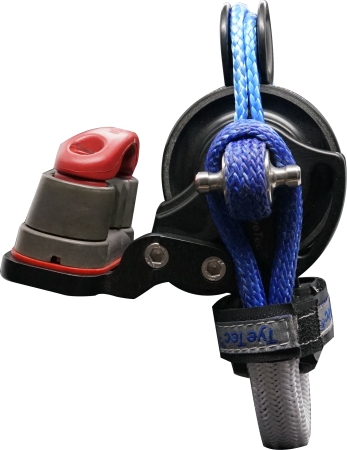 Der TyeTec® Snapper Block enstand aus der Serie 01. Es gibt ihn in den Größen 45 mm und 60 mm und in den Ausführungen als Code Blue (Gleitlager), Code Black (zweistufiges Kugellager) oder Code Red (Hochlast-gleitlager). Die Klemme lässt sich auf unterschiedliche Zugwinkel einstellen. Sie kann oben oder unten montiert werden. Mit dem „Swivel Padeye“ ergibt sich ein Wirbelblock, der frei in jede Richtung drehen kann.