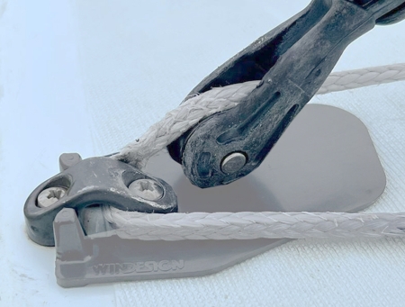 Die Schutzplatten schützen das Deck vor Beschädigungen durch den Traveller Block. Die Platten lassen sich einfach um die Traveller Ösen schieben und bleiben durch die Traveller Leinen sicher an ihrem Platz.