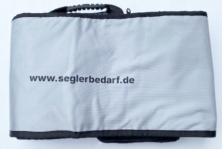 Riggtasche für ILCA / Laser aus Heavy Duty Polyester 600D PVC Ripstop mit 3 Fächern für die Riggteile. Mit dem Reißverschuss kann man die Tasche komplett öffnen, um die Riggteile in die einzelnen Fächer zu verstauen. Verschluss mit Reißverschluss, Tragegriffe, Lüftungsnetz.