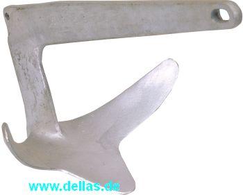 Ausgezeichnete Haltekraft, besonders in Sand- und Schlickgründen. Stahl, feuerverzinkt, Stahlguss, in einem Stück.