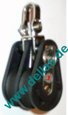 Block mit demontierbarem Wirbel, 2 Rollen, Kunststoffrolle 35 x 12mm, Edelstahl-Kugellager, Seitenteile aus hochwertigem UV-beständigem Kunststoff.
