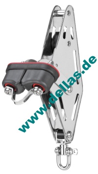 Großschotviolinblock mit 1 Scheibe 50 x 13 mm und 1 Scheibe 29 x 13 mm, sowie Hundsfott und Klemme. Gleitlager