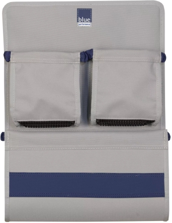 Leicht an- und abzubauende Tasche mit den Blue Performance Haken, die von einer Schraube gehalten werden. Ideal für Telefone, Tablets und Bücher, sowie andere kleine Dinge, die ansonsten für Unordnung sorgen. Diese Version hat eine große untere Tasche und zwei kleine obere Taschen. Die Taschen sind aus wasserdichtem, wetter- und UV-stabilem Ripstop-Gewebe.